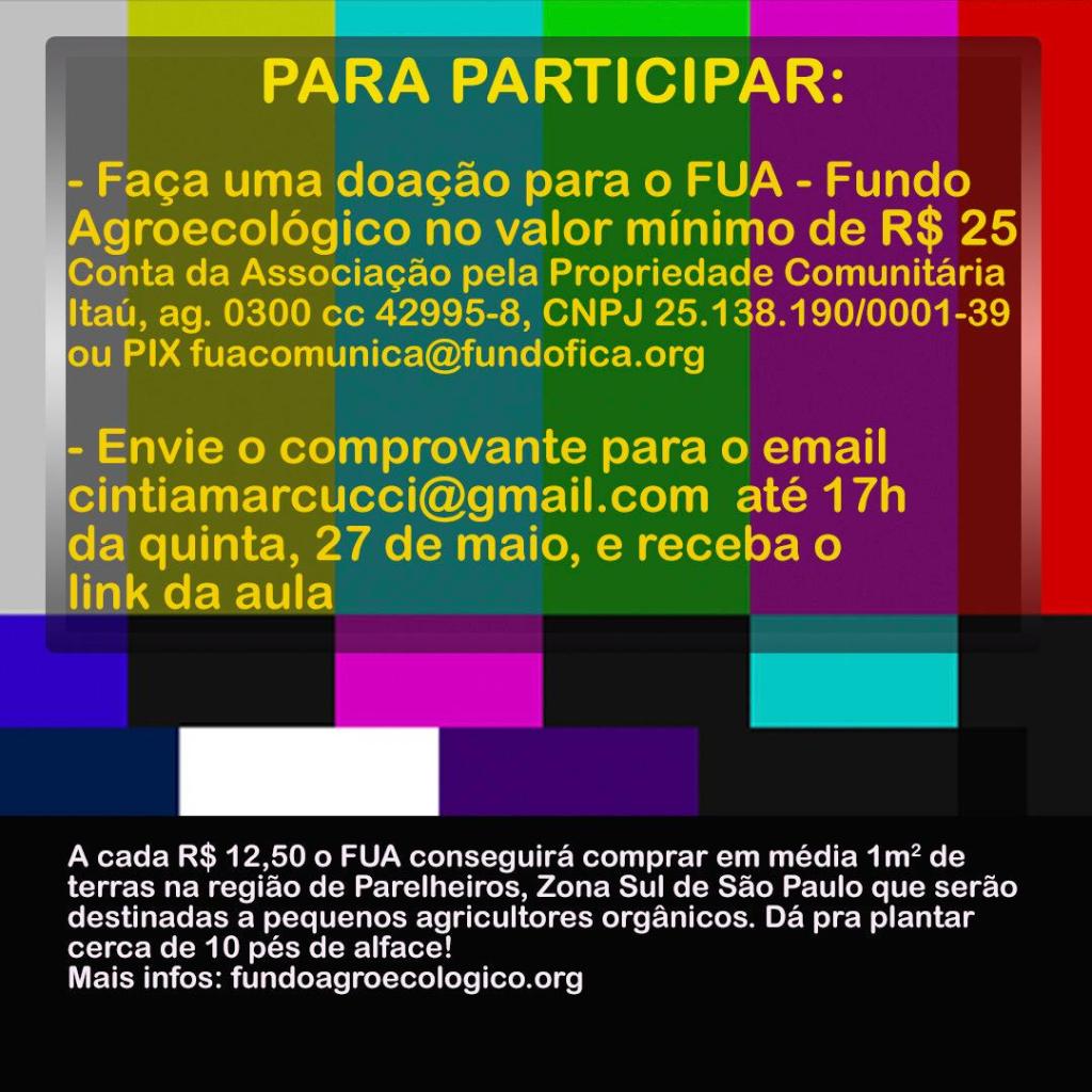 A inscrição é uma doação ao Fundo Agroecológico (FUA), que viabiliza a compra de áreas para a produção agroecológica familiar.